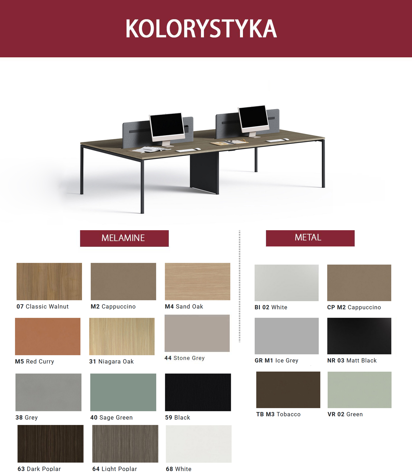 Biurko workbench w standardzie nie zawiera widocznego na zdjęciu panelu akustycznego jest to opcja dodatkowo płatna.