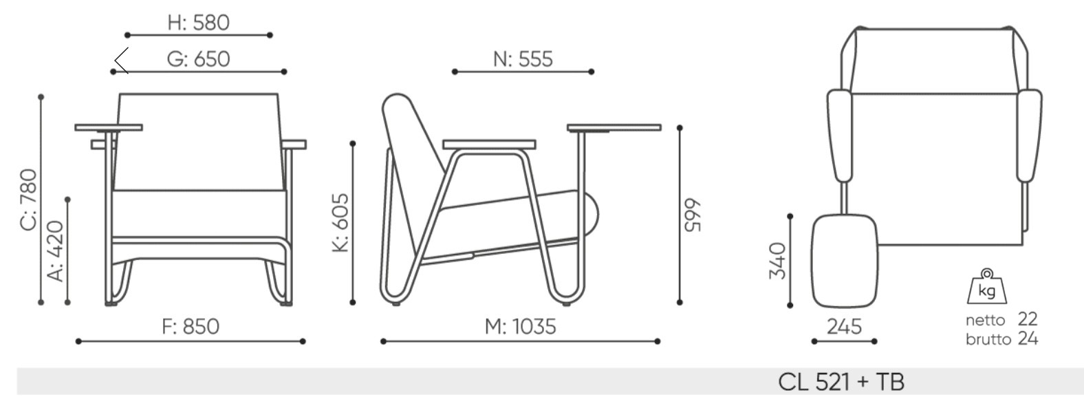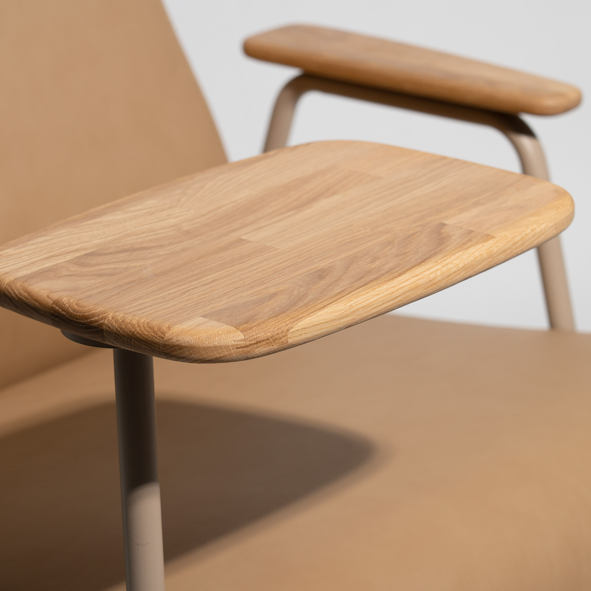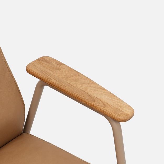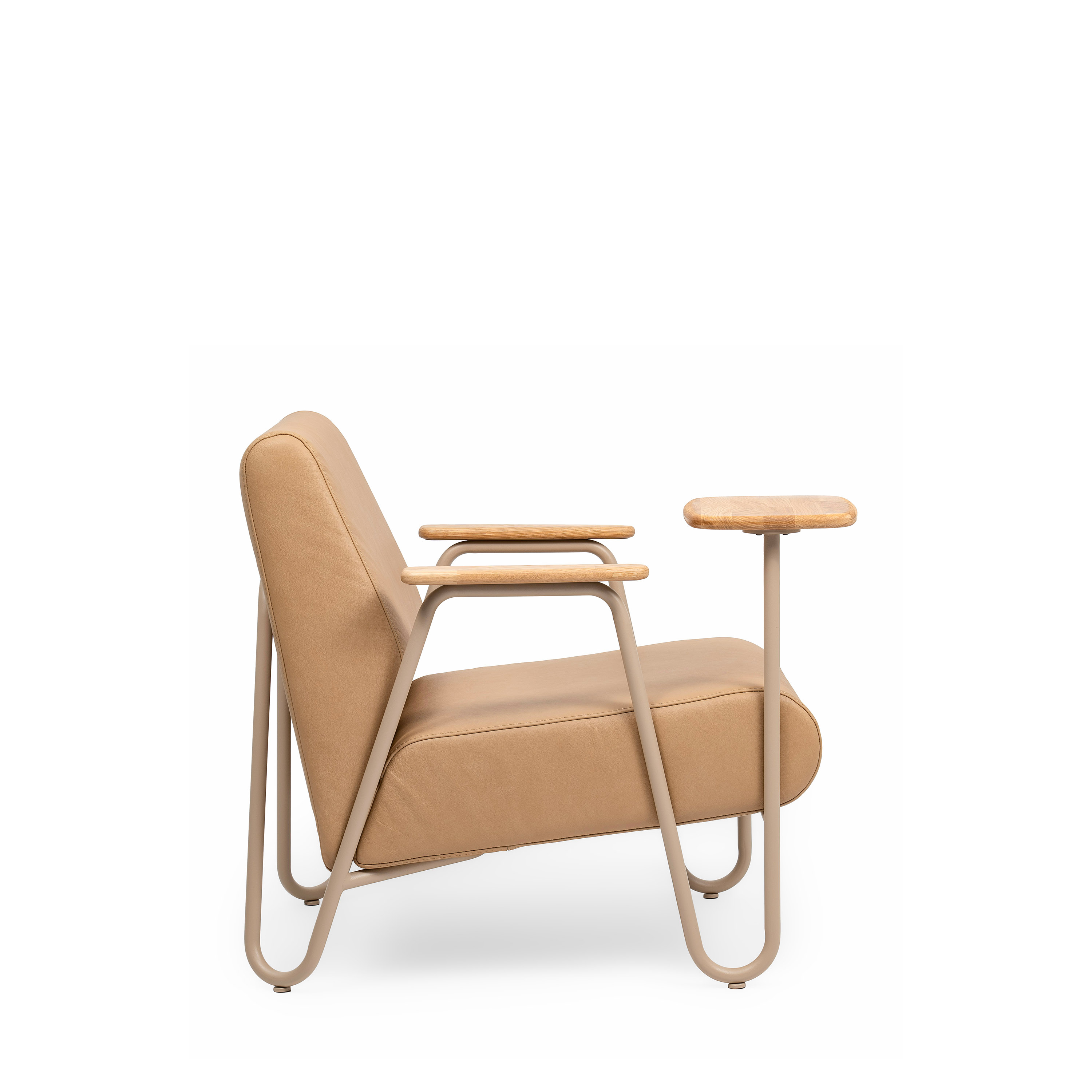 Siedzisko i oparcie zostały sklejone z miękkiej, dobrze wyprofilowanej tapicerki, zapewniając przytulną, swobodną siedzibę wręcz stworzoną do relaksu. Minimalistyczny design, kontrastujące proporcje oraz delikatna geometria metalowego rusztu sprawiają, że fotele doskonale wpisują się zarówno w nowoczesne wnętrza, jak i przestrzenie publiczne o retro charakterze.