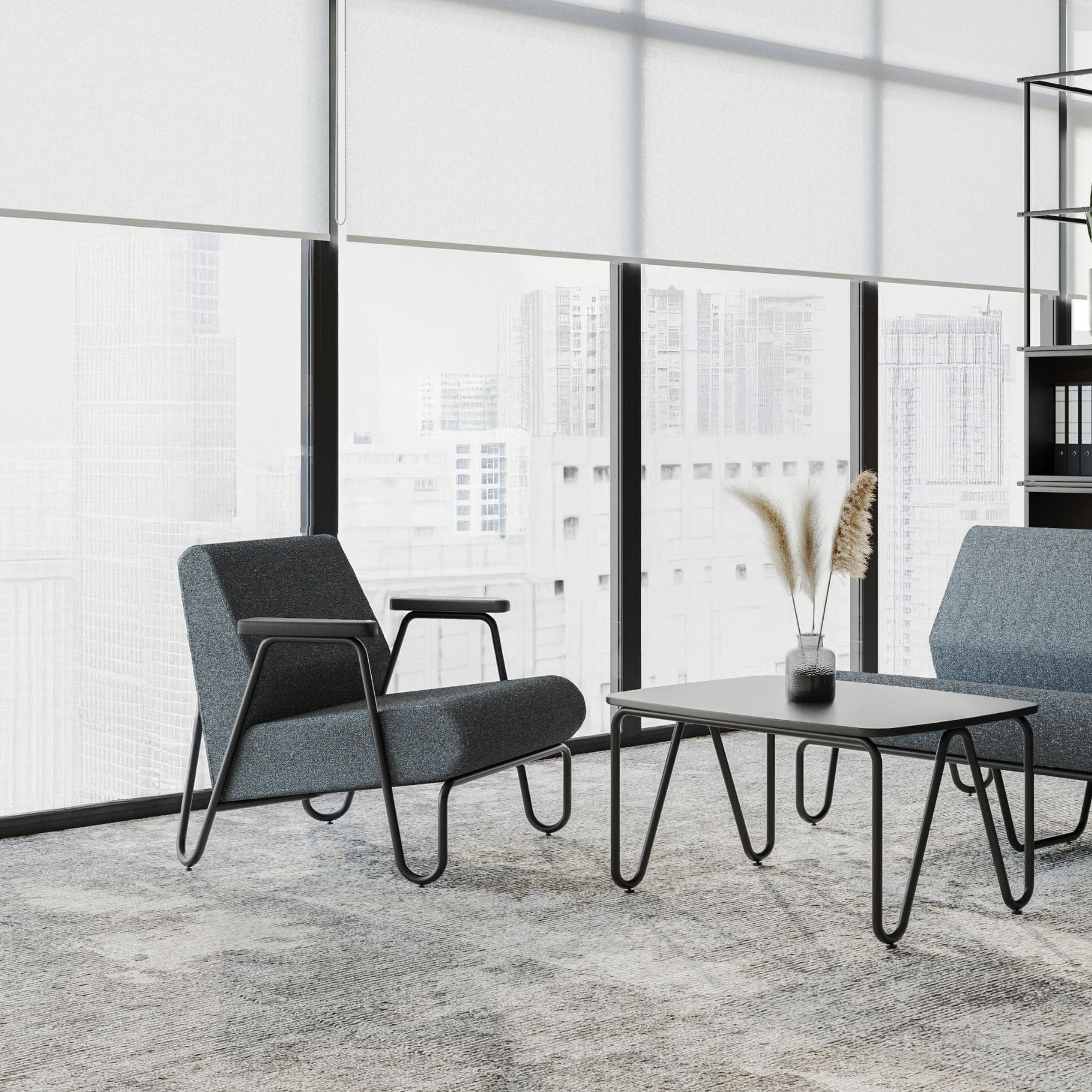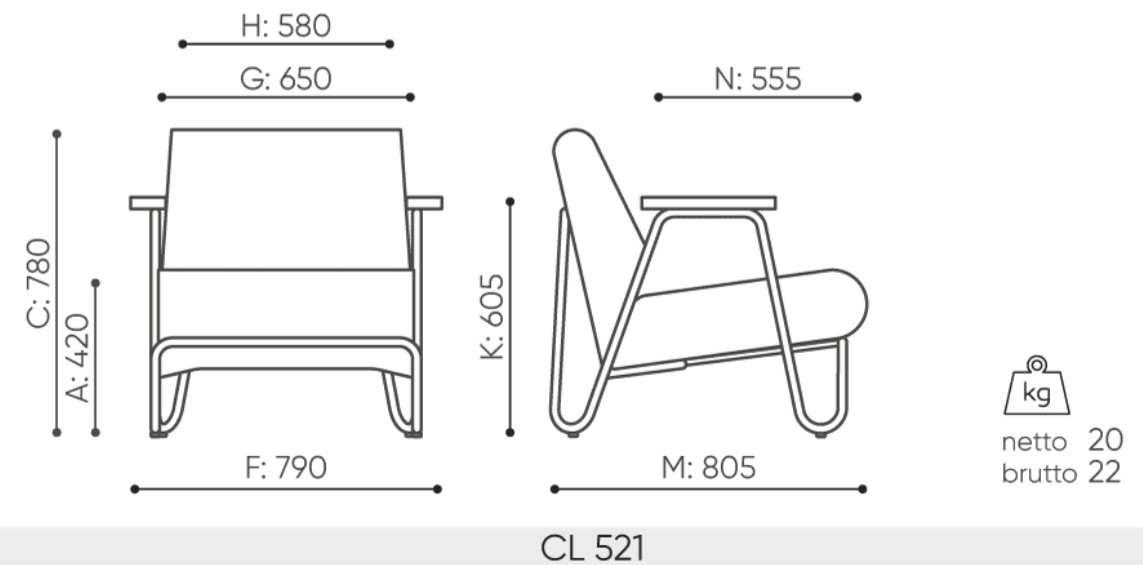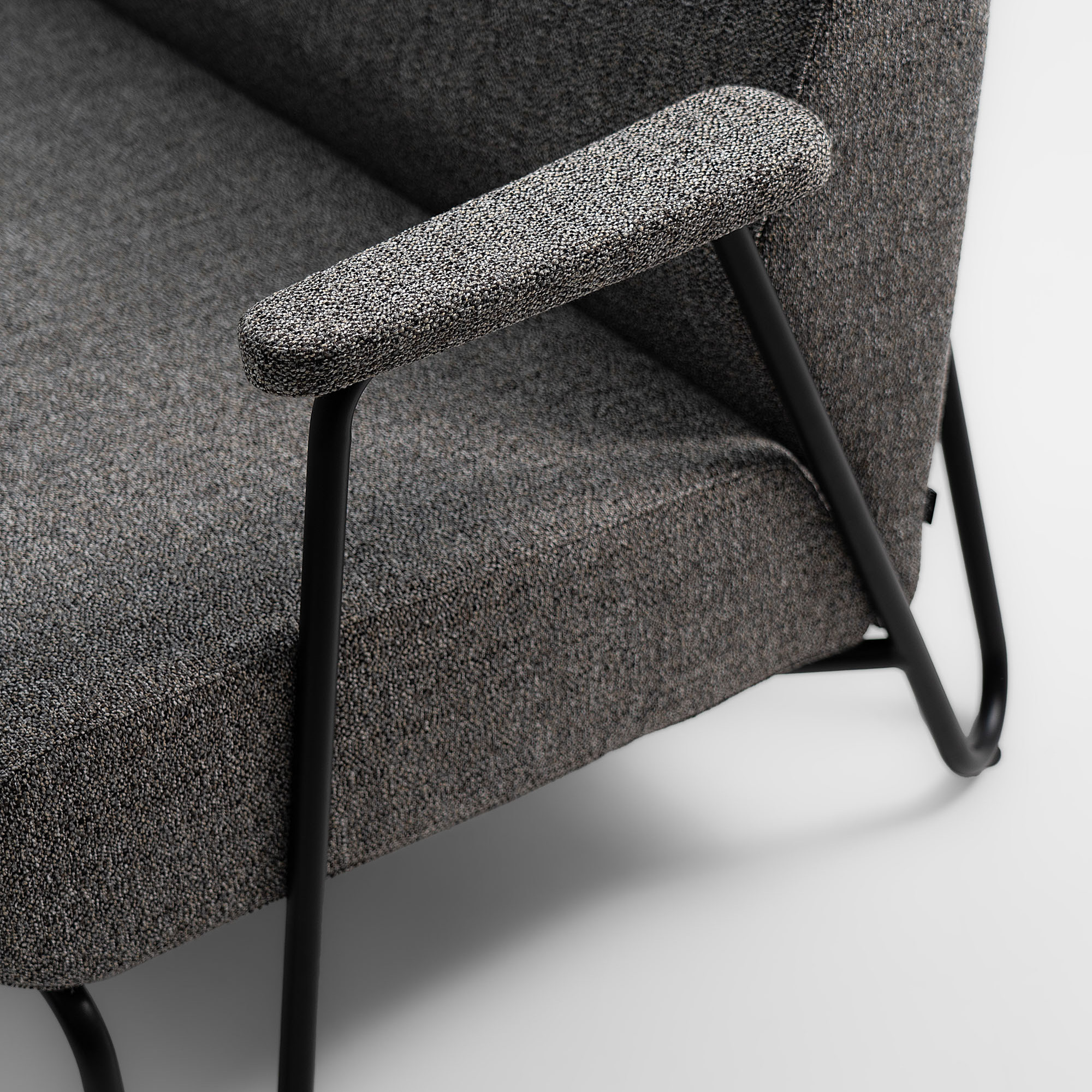 Siedzisko i oparcie zostały sklejone z miękkiej, dobrze wyprofilowanej tapicerki, zapewniając przytulną, swobodną siedzibę wręcz stworzoną do relaksu. Minimalistyczny design, kontrastujące proporcje oraz delikatna geometria metalowego rusztu sprawiają, że fotele doskonale wpisują się zarówno w nowoczesne wnętrza, jak i przestrzenie publiczne o retro charakterze.