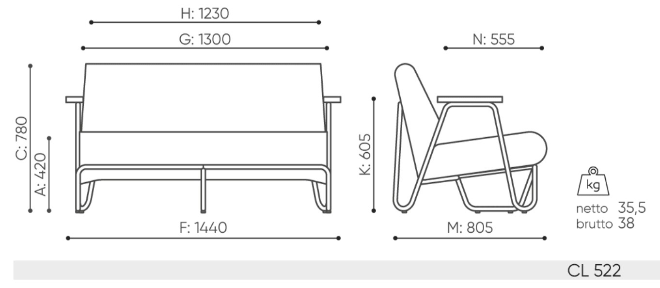 Sofa dwuosobowa Clip CL 522 z podłokietnikami