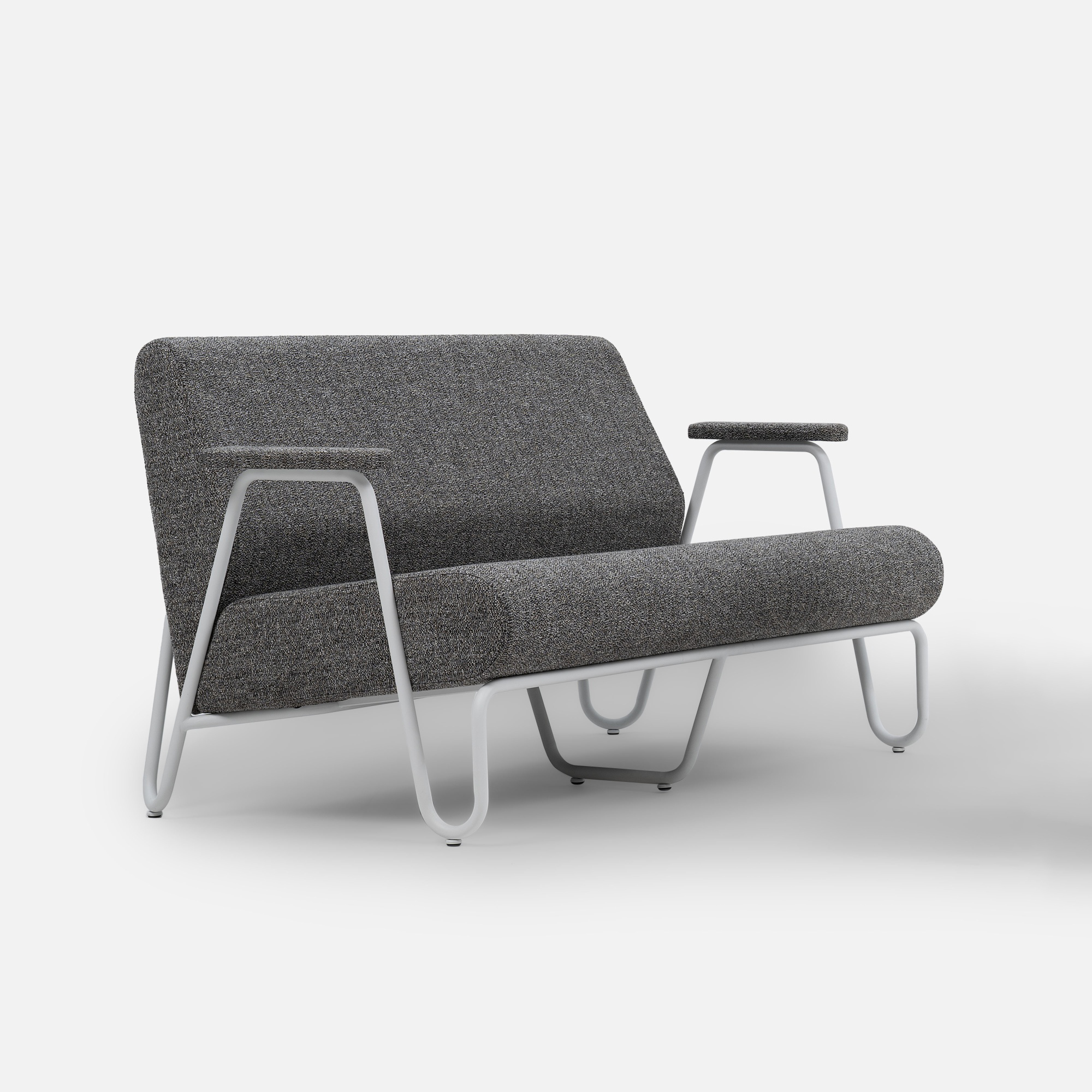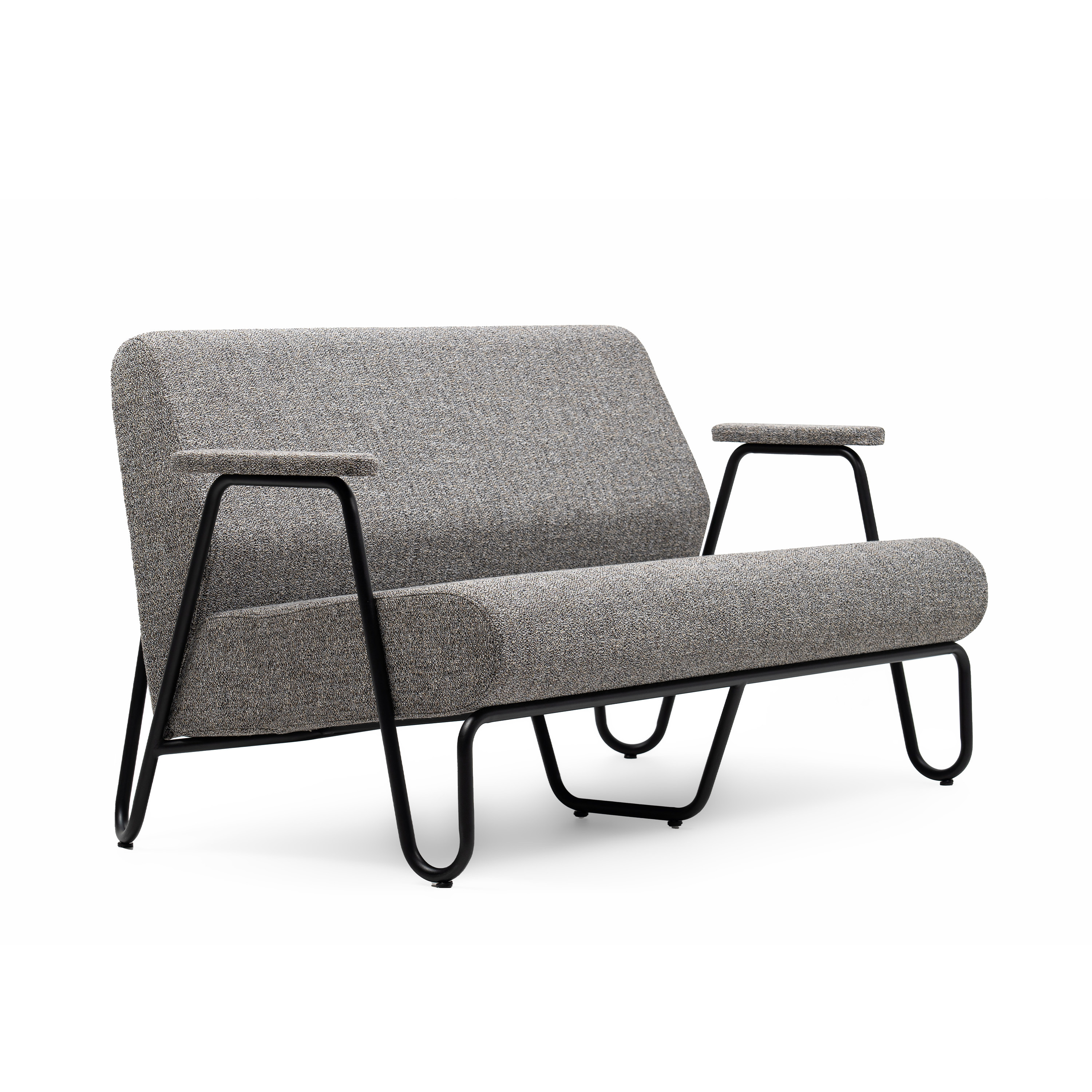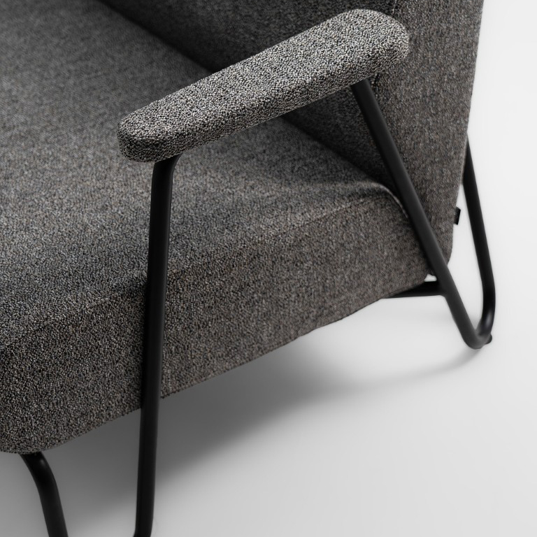 Siedzisko i oparcie zostały sklejone z miękkiej, dobrze wyprofilowanej tapicerki, zapewniając przytulną, swobodną siedzibę wręcz stworzoną do relaksu. Minimalistyczny design, kontrastujące proporcje oraz delikatna geometria metalowego rusztu sprawiają, że fotele doskonale wpisują się zarówno w nowoczesne wnętrza, jak i przestrzenie publiczne o retro charakterze.