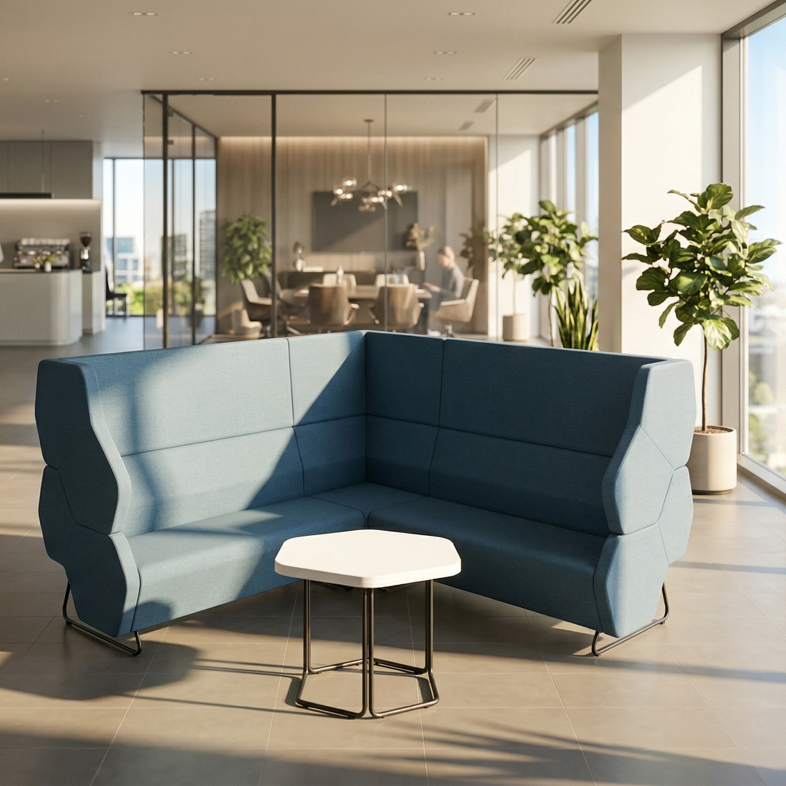Hexa to modułowy system siedzisk umożliwiający tworzenie zestawień dostosowanych do niemal każdej przestrzeni, w zależności od funkcji i estetyki wnętrza. Pozwala tworzyć przestrzenie akustyczne izolujące rozmówców oraz wydziela strefy sprzyjające poprawie kontaktów międzyludzkich, lepszemu przepływowi informacji i wymianie spostrzeżeń.